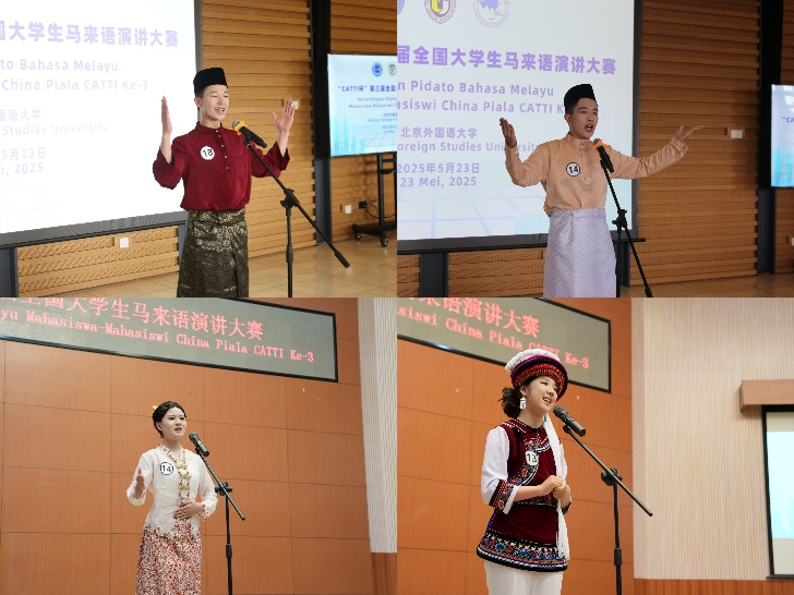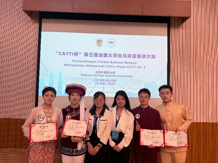 2025年5月22日至23日,第五届中国—马来西亚翻译、语言与文化国际研讨会暨“CATTI杯”第三届全国大学生马来语演讲大赛在北京外国语大学顺利举行。作为我国马来语教育领域最具权威性与代表性的赛事之一,本次大赛聚焦“中马关系”主题,吸引了来自全国13所高校的43名优秀选手同台竞技,围绕文化互鉴、青年交流与经贸发展等话题展开深入阐述。