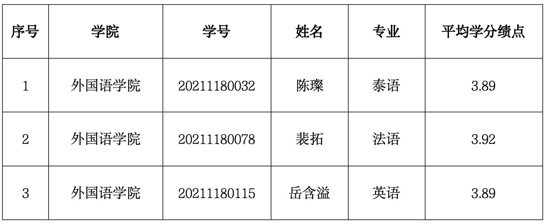 截止日期前共收到3名2021级学生的申请材料,经比对相关的申请条件进行审核,现将拟授予本科荣誉证书进行公示。