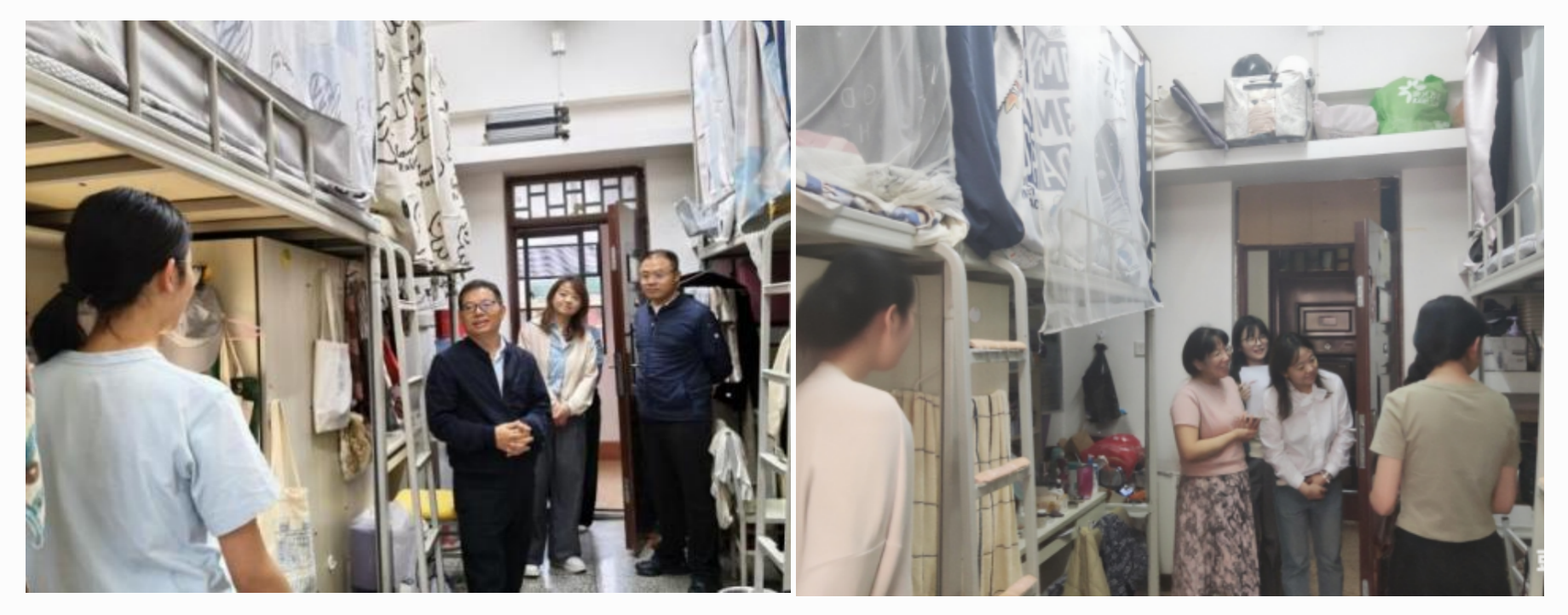 6月16日至30日,外国语学院党委书记唐国锋、党委副书记何淼淼、副院长谢萍三位学院领导与学工办老师深入学生宿舍,走访慰问处于期末考试周的外院学生,了解学生在学习与生活等方面的情况,助力学生在各自的学业上顺利发展。