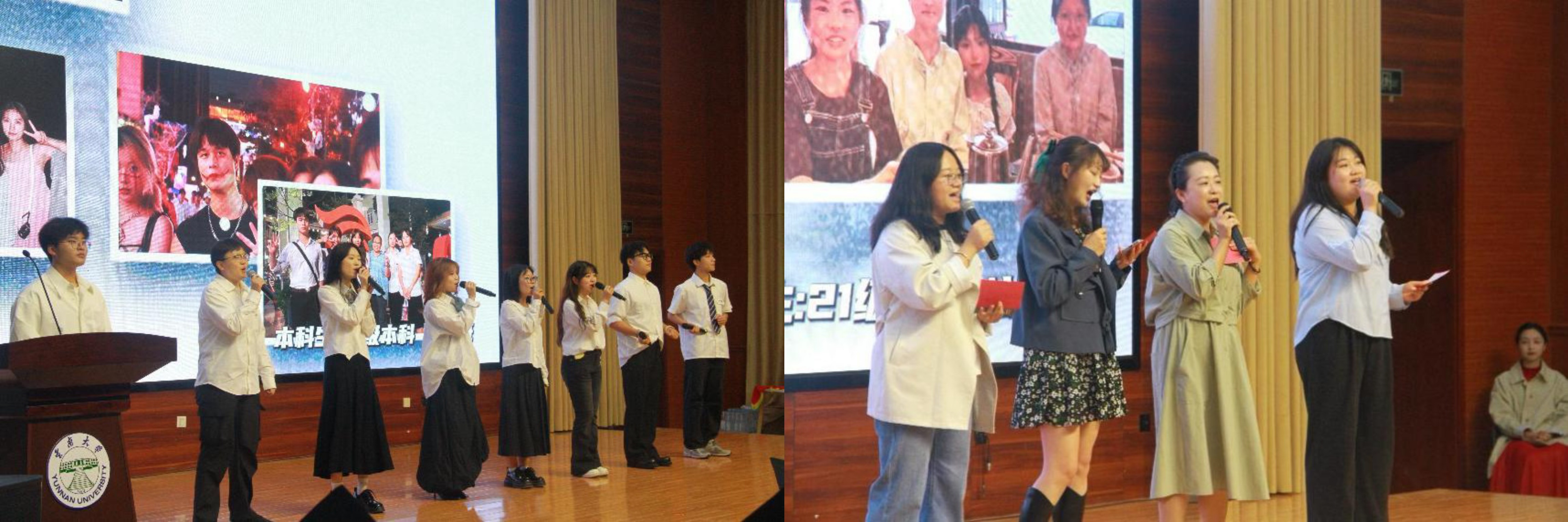 典礼现场,何淼淼副书记宣布云南省优秀毕业生、云南大学优秀毕业生、外国语学院优秀毕业生名单。各级优秀毕业生依次上台领奖。